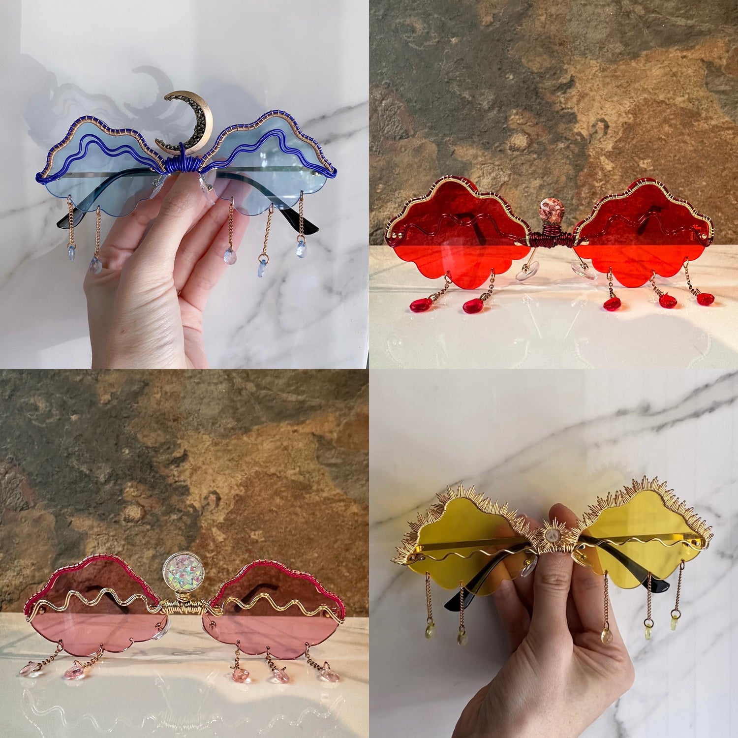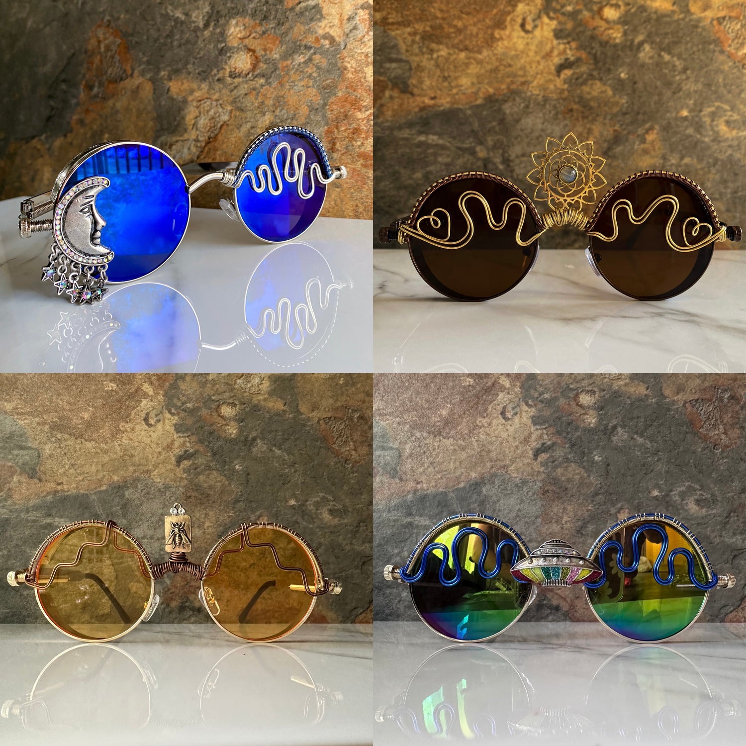I have created a Google Form to allow you to create custom wire wrapped sunglasses. You can choose between mushroom, fairy wing, cloud, and round steampunk sunglasses. Each style of sunglasses will have its own Google Form for you to fill out. I created Google forms for only these styles, as they are my most popular sunglasses. If you prefer a custom pair that is not listed here, please contact me at sweetandsavvyshop@gmail.com, and I will see if I can bring your idea to life!