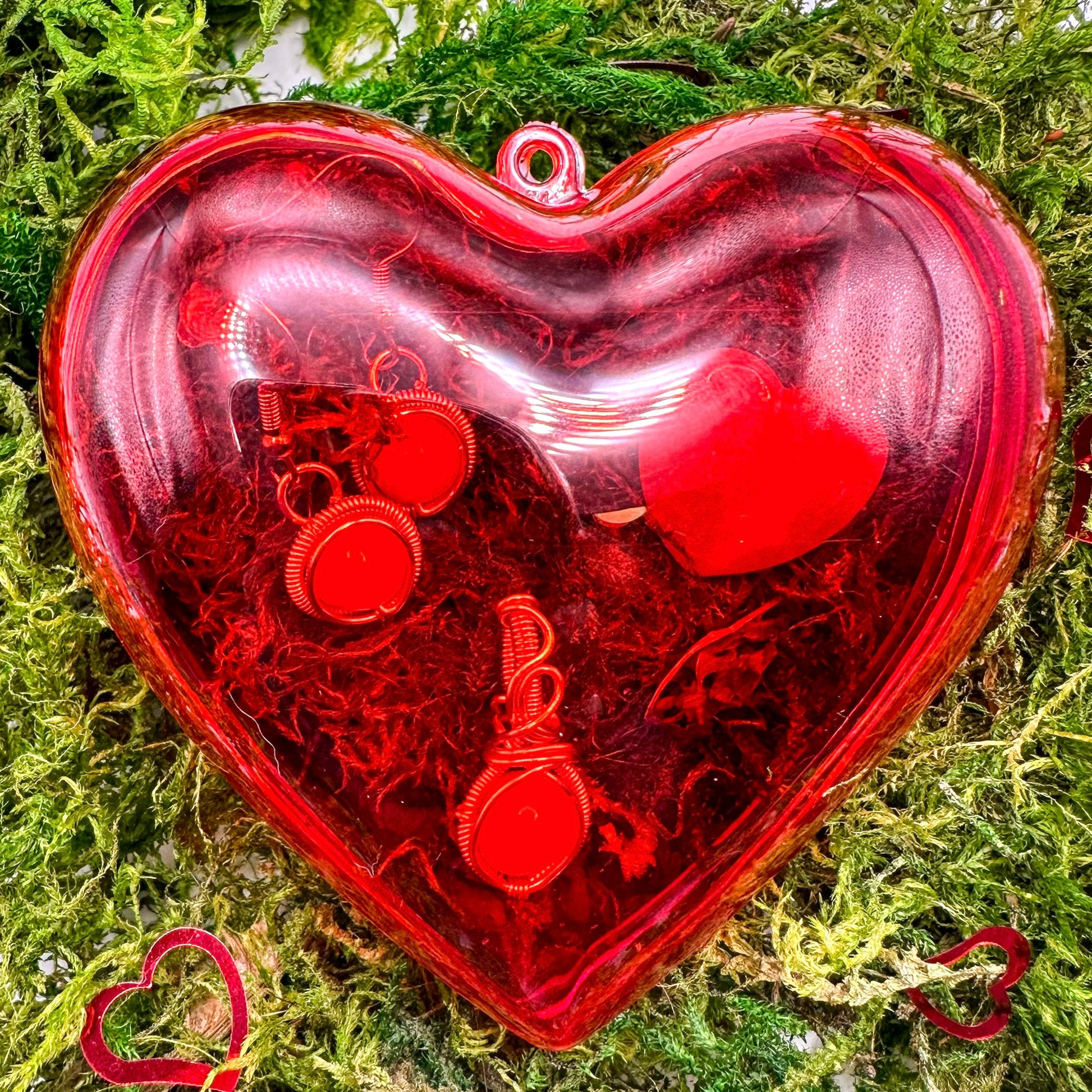 This heart box includes a matching set of a gold plated rose quartz necklace and earrings and a rose quartz heart crystal.